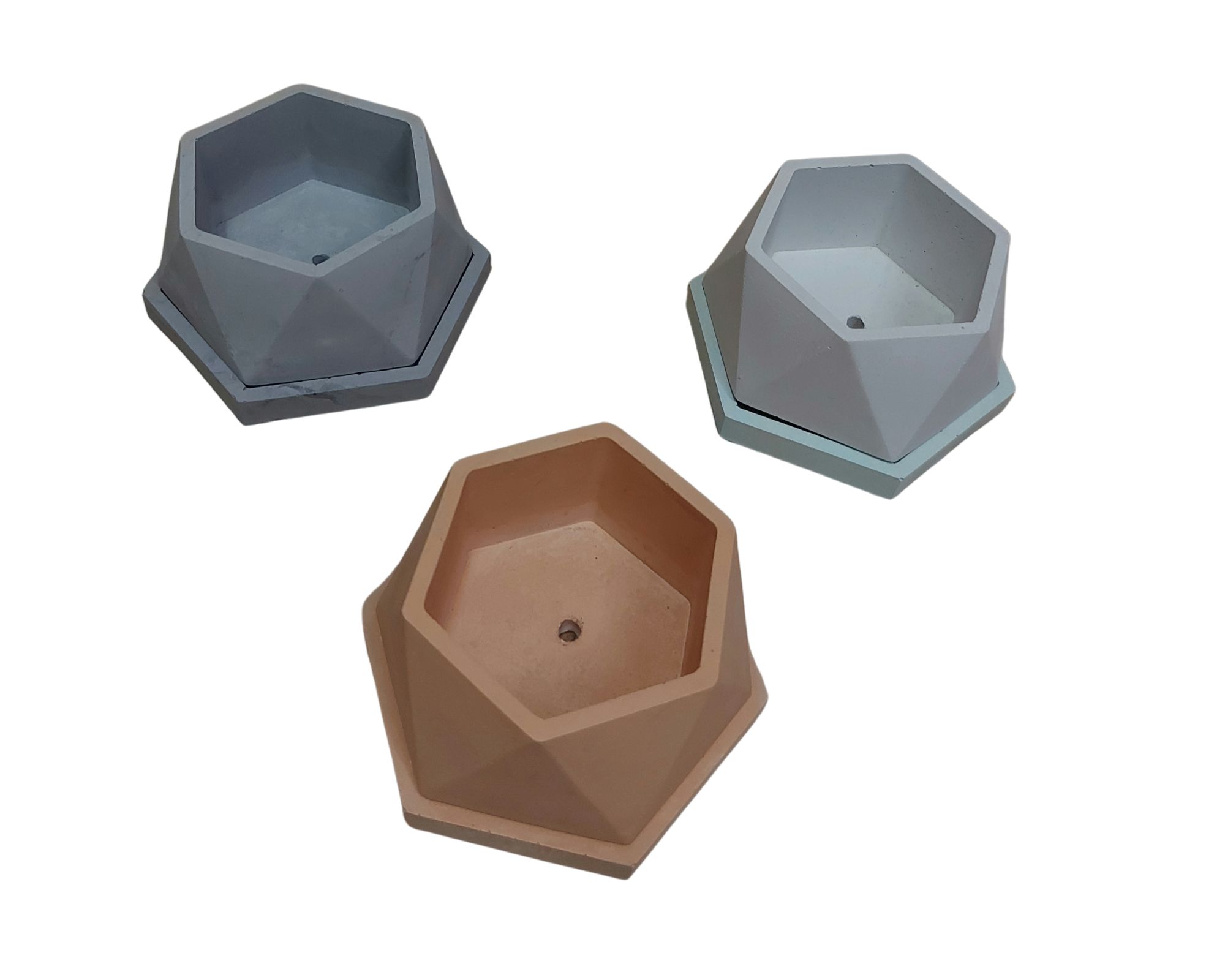 Handmade Hexagon Concrete Pot with Bottom drainage hole and Saucer