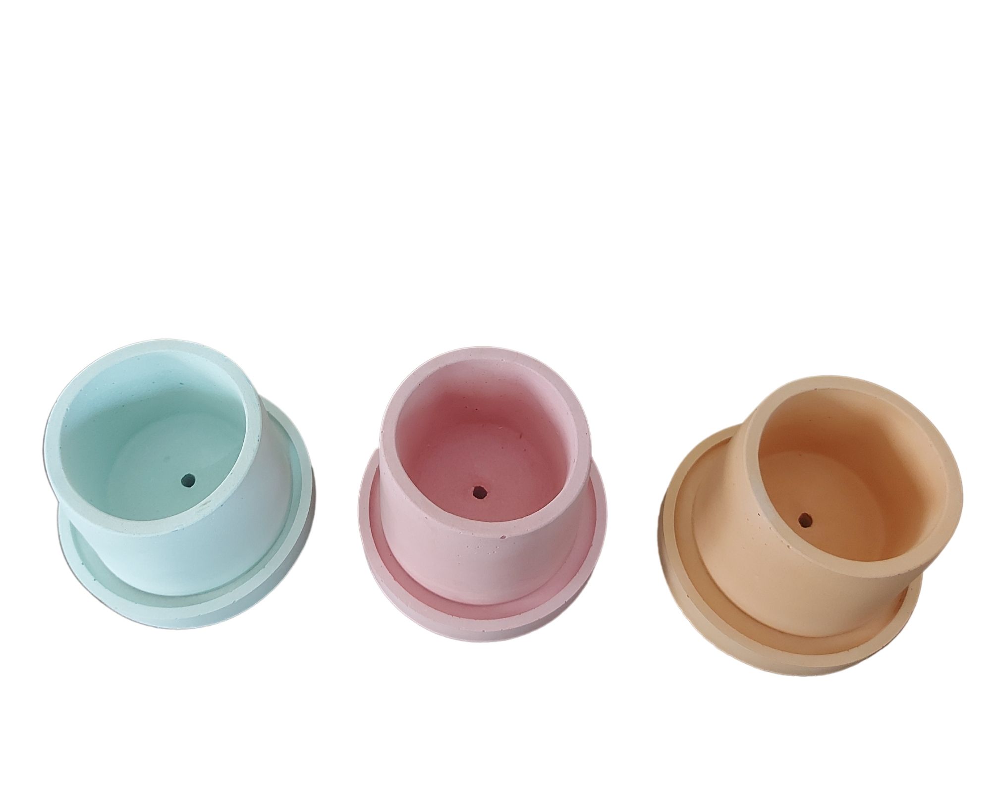 Handmade Round Concrete Succulent Pot with Bottom drainage hole and Saucer